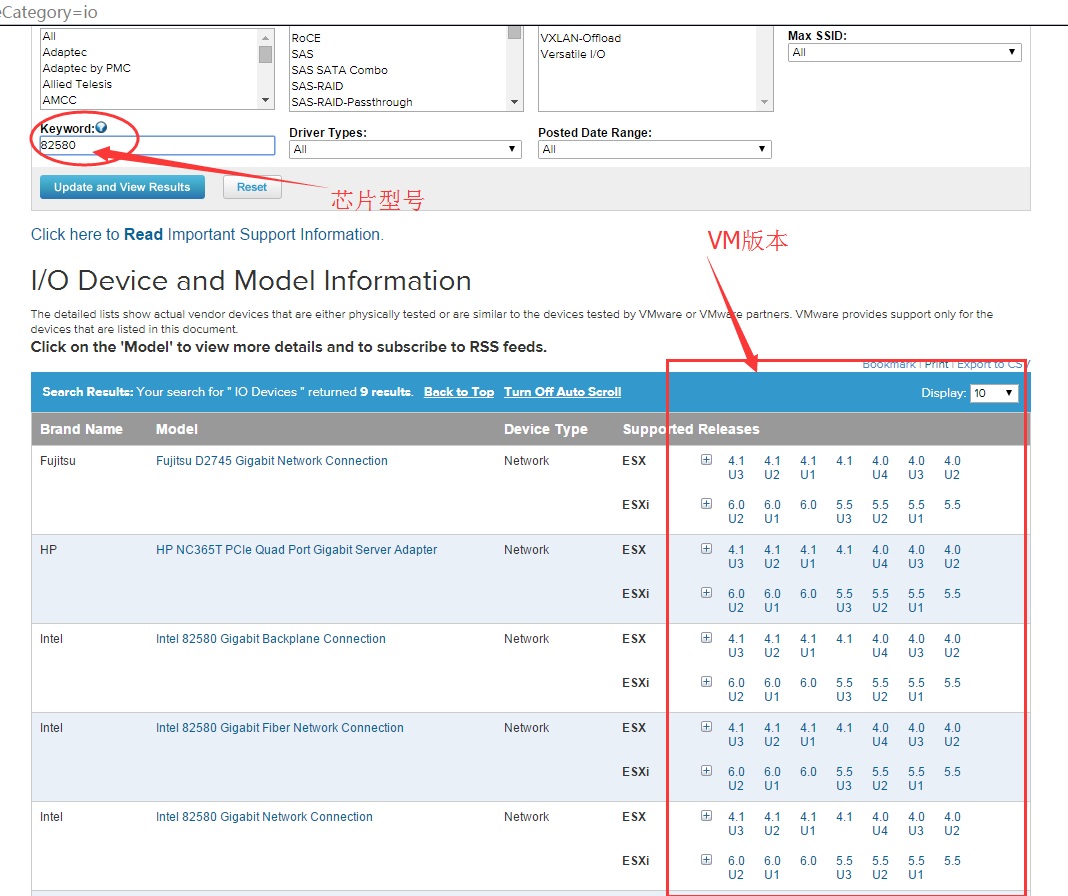 網(wǎng)卡芯片在vmware ESXI兼容查詢列表網(wǎng)頁: